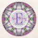 Geometric mandala hexagon star pattern in purple, silver and green. Elegant monogram and custom name centre. Summer afternoon wedding or engagement.