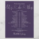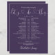 This simple elegant wedding schedule-timeline can be personalised with your wedding details in chic lettering on a purple background. Designed by Thisisnotme©