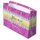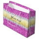 Glamourous personalised faux purple sequins, shiny gold foil and diamonds large gift bag.