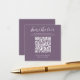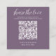 Purple share the love QR Code cards. Place these small cards at your wedding reception tables so guests can scan to upload the photos they took at your wedding reception to your album or social media. To generate a new QR code on the design, add the URL of your online wedding album or social media handle in the area provided, using the "personalise" feature. A brand new QR code will then be added to to the design.