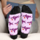 Enjoy these fun shark Christmas socks during the holiday and all year round. They feature cartoon sharks in Santa hats as a pattern on a purple background. Simply add them to your cart, get them home, then add the joy of sharks to your already fun Christmas!