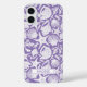 Customize this purple shell pattern iPhone 16 plus case with your your name in a trendy modern CAP font in purple on white. It's so modern and beachy!