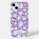 Customize this purple shell pattern iPhone 15 plus case with your your name in a trendy modern CAP font in purple on white. It's so modern and beachy!