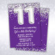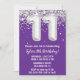 Purple and silver 11th Birthday invitation 11 birthday party invitation for a black white silver with modern script writing and fun foil balloons.
