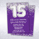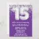 Purple and silver 15th birthday party invitation 15 birthday party invitation for a boy or girl with modern script writing and fun foil balloons.