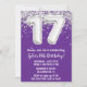 Purple and silver 17th birthday party invitation 17 birthday party invitation for a boy or girl with modern script writing and fun foil balloons.