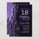 Purple and silver agate 18th birthday party invitation. Elegant modern design featuring watercolor agate marble geode background, faux glitter silver and typography script font. Trendy invite card perfect for a stylish women's bday celebration. Printed Zazzle invitations or instant download digital printable template.