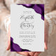 A purple watercolor agate design trimmed with faux silver glitter appears in two corners of this elegant design. Personalise it with the couple's names in charcoal grey handwriting script over a large ampersand. Add the wedding details in copperplate and italic fonts on a pale grey background. The reverse side features a matching purple and silver agate design.