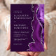 The right edge of this elegant modern wedding invitation features a purple watercolor agate border trimmed with faux silver glitter. The customisable text combines silver grey serif, copperplate and italic fonts on a deep purple background. The reverse side features a matching purple and silver agate design.