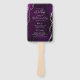 This elegant, modern wedding program fan features a purple agate background trimmed with silver faux glitter. The text appears in silver gray handwriting and copperplate fonts.