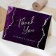 This trendy modern wedding thank you card features a purple watercolor agate background trimmed with faux silver glitter. The customizable text features the words "Thank You" in silver gray handwriting script. Add the names of the newlyweds below.