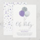 Purple & Silver Balloons Oh Baby Girl Baby Shower Invitation