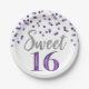Purple Silver Confetti Sweet 16 Birthday Party Paper Plate
