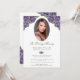 Purple Silver Floral Photo Memorial Funeral Invitation