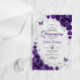 Purple and silver Quinceanera celebration acrylic invitation. Features, script font, silver butterflies, watercolor roses and tiara. Perfect for an elegant princess style glam celebration. Personalize with your own details. Stylish transparent or frosted acrylic invitations.