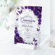 Purple silver and white Quinceanera celebration invitation. Features script font, silver butterflies, watercolor roses and tiara. Perfect for an elegant princess style glam celebration. Personalize with your own details. Stylish transparent or frosted acrylic invitations.