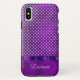 Here's a pretty personalised phone case for her that features a faux silver gem studded top over a background of dramatic deep royal purple abstract background. A faux purple ribbon bordered in black separates the two sections. Elegant and classy! * Please note - the image is printed on the case, and does not contain gems, silver, glitter, any metal, or fabric such as ribbon.*