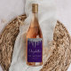 These chic 40th birthday party wine bottle labels feature a sparkly silver faux glitter drip border and purple background. Personalise them with her name in silver grey handwriting script, with her birthday and date below in sans serif font.