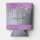 Purple silver glitter drips party monogram can cooler