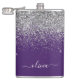 Purple Silver Glitter Girly Glam Monogram Hip Flask