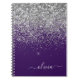 Purple Silver Glitter Girly Monogram Name Notebook