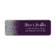 The left-hand edge of this elegant modern wedding return address label features a silver faux glitter design. The customisable text combines silver grey handwriting and sans serif fonts on a dark purple background.