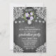 Purple Silver Grey Floral Rustic Graduation Party Invitation