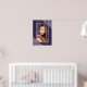 Elegant purple floral photo celebration of life/funeral welcome sign featuring purple roses and baby's breath flowers decorating a photo inside a silver frame. Matching items available.
