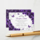 Purple silver Quinceanera reception details enclosure cards. Features, script font, silver butterflies, watercolor roses and tiara. Perfect for an elegant princess style glam celebration. Personalize with your own details.