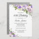Purple Silver Sparkle Floral 40th Birthday Invite