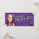 Ticket sweet 16 invitation with silver Hollywood marquis lights Sweet 16 Party with bar code and ticket style layout. This beautiful purple and silver Sweet sixteen party invitation is easily customised for your event by simply adding your details. You can change the background colour on the front and back.