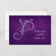 This response card matches the Purple Silver Swirl Monogram Wedding Invitations in our store. It has your custom text in silver grey on an abstract purple violet background. A pretty silver swirl is at the left. The back of the card is white with dark purple text, which makes it easy for your respondent to mark. Elegant!