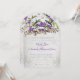 Vintage Silver and Lavender Purple Lovebird Blooming Tree with a Faux Lace Damask Background Enchanted Fairytale Forest Wedding Invitations. Perfect for an English Cottagecore Aesthetic for the Love Bird's Simpler Times back to Nature Aesthetic Wedding Venue.