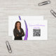 There's just a sliver of faux purple glitter on both sides of this business card front design. The front features a photo placeholder on the left with template name and title plus QR code on the right. The back includes a coordinated design with text fields for the business name and details. Replace the placeholder photo with your vertical format photograph and the link for a QR code. Personalise the template fields or edit using the design tool to select a font style, size, and colour you like. Use the QR code link to send potential customers to your website, review page, photos or other business related page. The placeholder photo is courtesy pixabay.com.