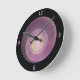 Add a contemporary element to your kitchen with this purple snail shell fractal clock. This clock includes purple numbers that are set against a black rim to add contrast and a clear view. The colour coordinates with the centre design, which features an abstract fractal design in soft purple, pink and yellow. It will make a unique gift for people who like contemporary, abstract designs.