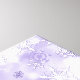 Design features purple and white snowflakes on a soft mauve and white background.