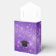 Elegant purple sparkle party favour box for a high school or college graduation. Personalise this beautiful trendy box with your class of 2025 school name under the chic black graduate cap. Trendy sparkly white stars design.