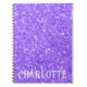 Fun party vibe, purple sparkling glitter notebook - text font is customisable and design is transferable-