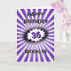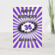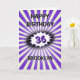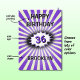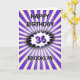 The background for this eye-catching birthday card is an explosion in purple and pale green, with a purple-edged cloud burst containing the number. There is a vintage comic retro vibe to the design with bright colours and text. You can edit the Happy Birthday greeting on the front, edit the number, change the name, and personalise the message inside as well (currently this reads simply "It's just a number...").