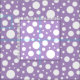 A pattern of white spots of different sizes on a pale purple / mauve background.