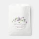 This favour bag features a pretty watercolor tulips, lilacs, grape hyacinth, and clover flowers. The vibrant purples and fresh greens craft a charming scene to present to your guests! Be sure to check out the Party Pixi Zazzle shop to find the matching wedding invitations!