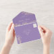 This bohemian-inspired all-in-one wedding invitation radiates earthy elegance, blending soft ivory and pastel purple hues with refined gold accents. At the centre, a delicate gold rope heart symbolises the couple’s unbreakable bond and love. Simple, yet graceful calligraphy adds a romantic touch, while RSVP details and a sleek wedding website link are seamlessly incorporated. The back of the invitation is hand-addressed, offering a personal, intimate feel. The design elegantly balances organic beauty with timeless simplicity, making it the perfect choice for a spring wedding that celebrates love, grace, and modern sophistication.