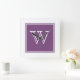 Add your initials or other text to customise this simple and modern Square Monogram Clock in purple and white. This trendy and chic clock would make a stylish accent on your wall.