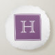 Add your initials or other text to customise this simple and modern Square Monogram Round Pillow in purple and white. This trendy and chic pillow would add a classic touch to any decor or make a perfect gift.