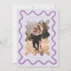 Whimsical and quirky save the date card featuring a hand drawn squiggly wavy frame around your photo. The colour is in purple.