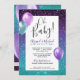 Theme Parties' starry night baby shower invitation design is the perfect whether you're celebrating mummy to be or the happy couple. The colours are rich purple and teal and the accents are matching teal and purple balloons. Easily customise and see your personalisations right on your screen! #StarryNight #Invitations #MommyToBe #BabyShower
