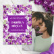 Purple stock flowers wedding save the date photo