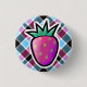 A cute-and-cool vector strawberry design on a pink and blue tartan background.