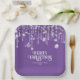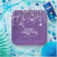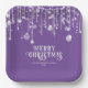 Purple and white string lights sparkles Christmas party paper plates with a cute whimsical fun party invitation for a festive Holiday party.