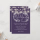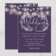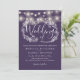 A purple wedding invitation featuring pretty string lights and a delicate hand-drawn rustic floral garland of botanical leaf foliage with stylish script typography. Personalise with your special wedding day information. Designed by Thisisnotme©
